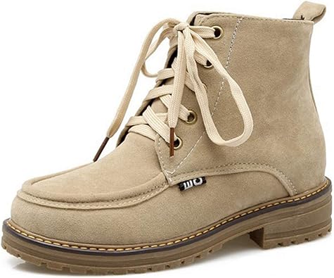 MISTU Women's Casual Round Toe Lace Up comfy booties for work