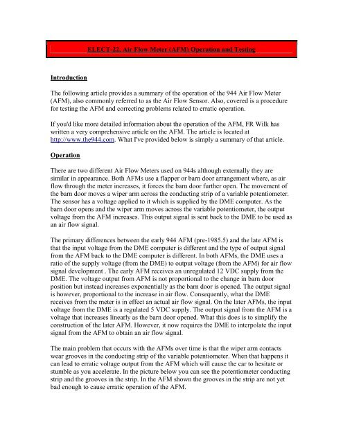 Air Flow Meter (AFM) Operation and clarks air flow