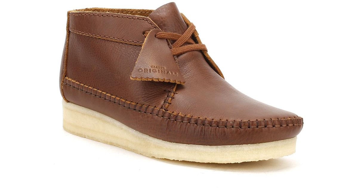 Clarks Mens Tan Leather Weaver Boots in clarks weaver tan leather