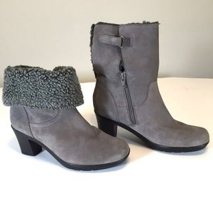 Clarks Softwear Gray Leather Fur Lined