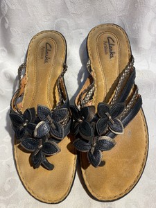 clarks black sandals with flower