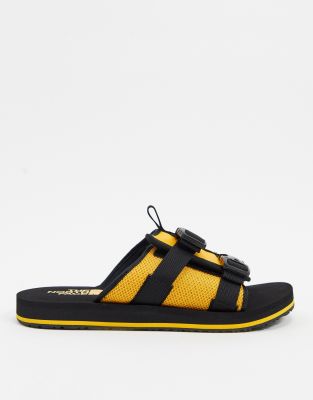 North Face EQBC sliders in yellow/black north face sliders womens