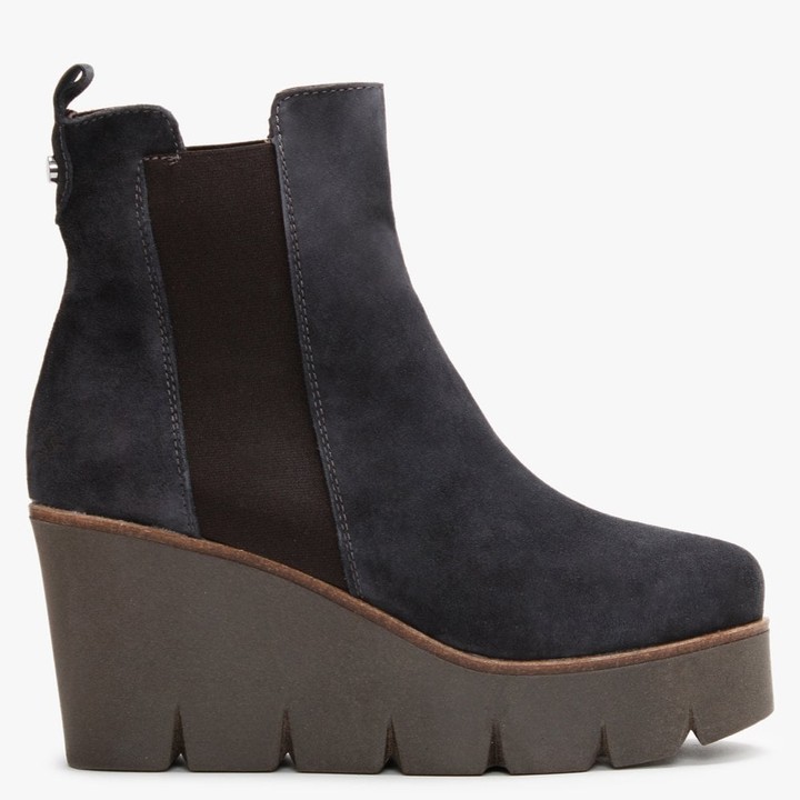 navy wedge boots uk