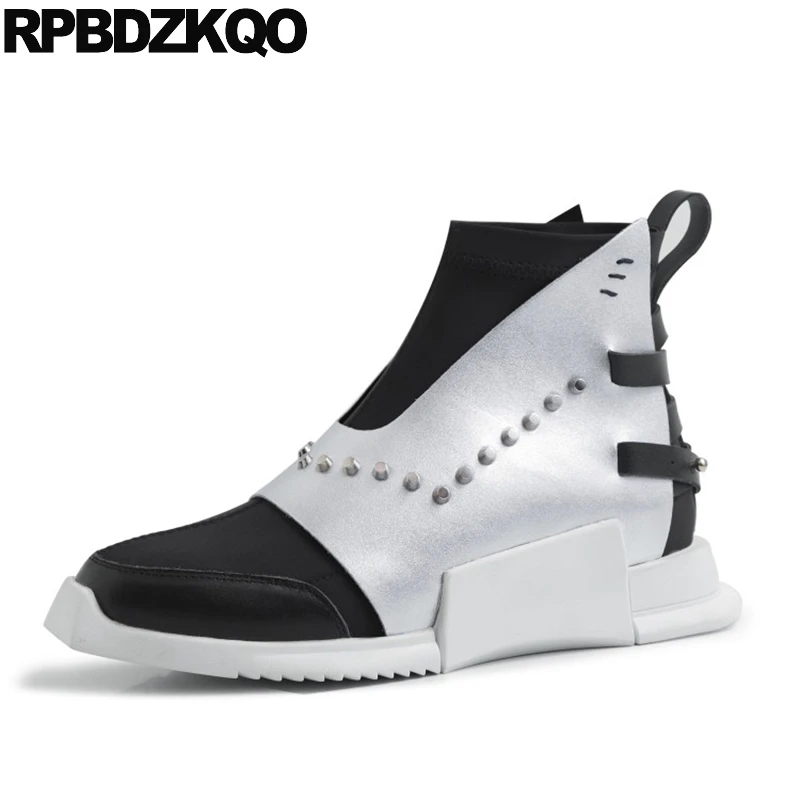 metallic silver stud fall square toe silver flat booties