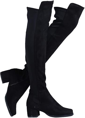 Shoe'N Tale Women Faux Suede Chunky black thigh high boots amazon