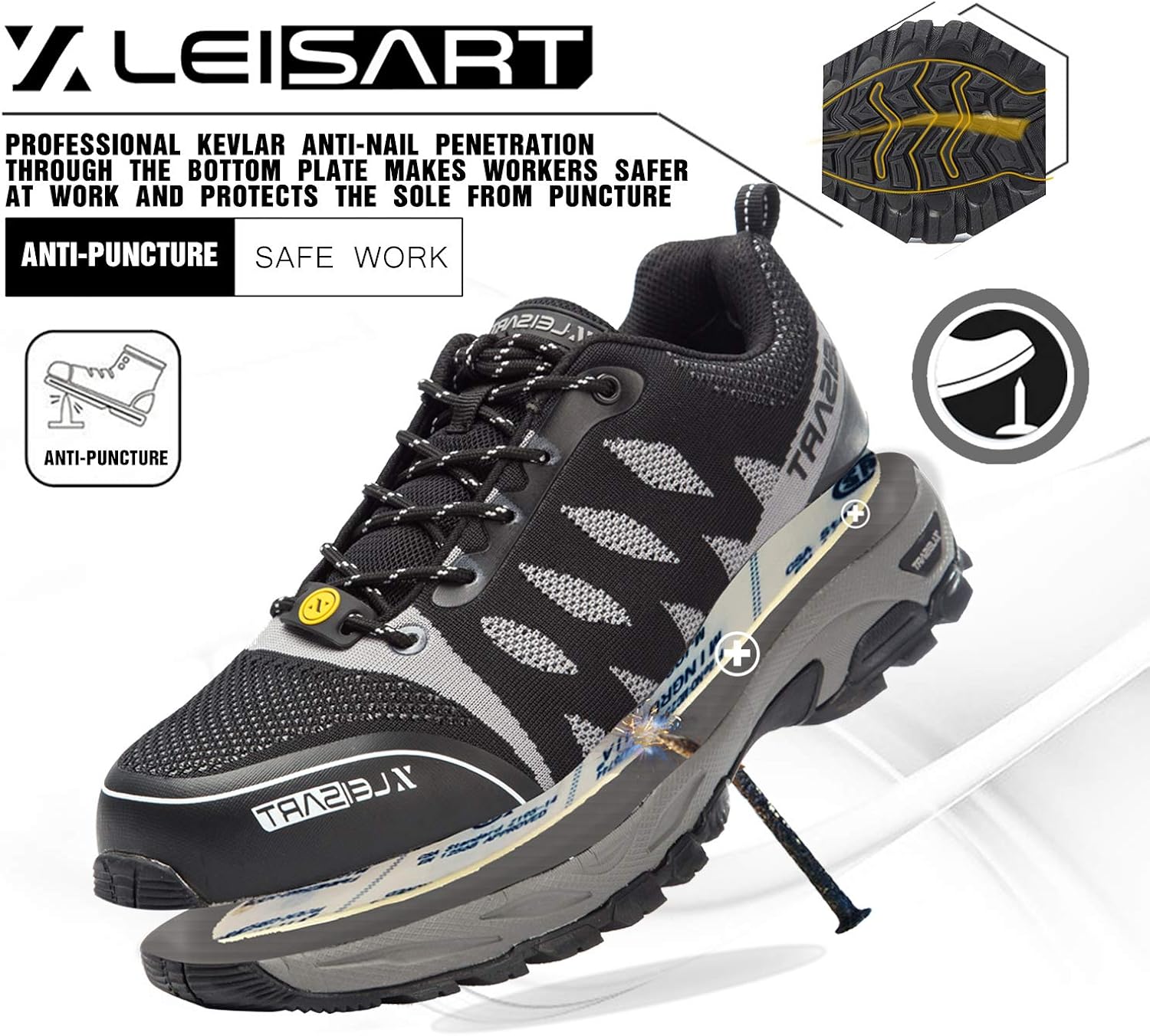 Leisart Steel Toe Work Safety Shoes for nail proof shoes