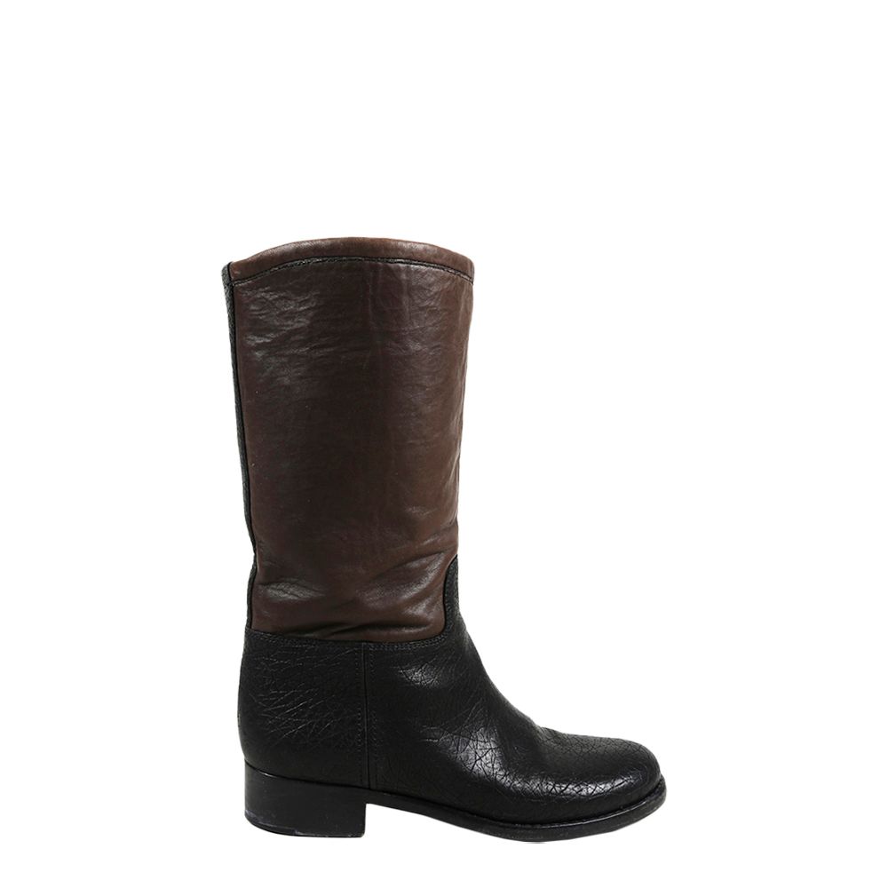 Chanel Black Brown Leather Mid Calf chanel mid calf boots