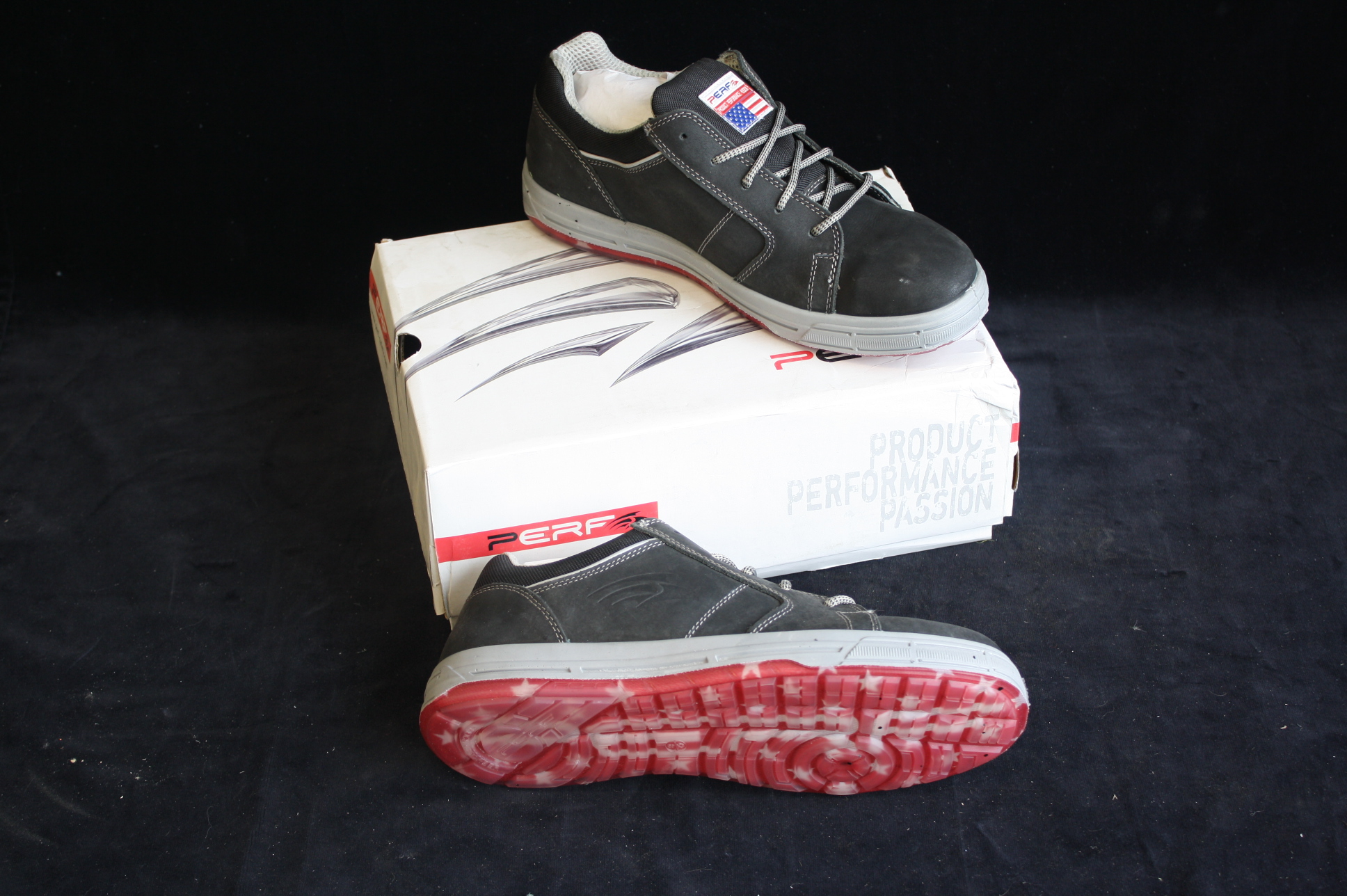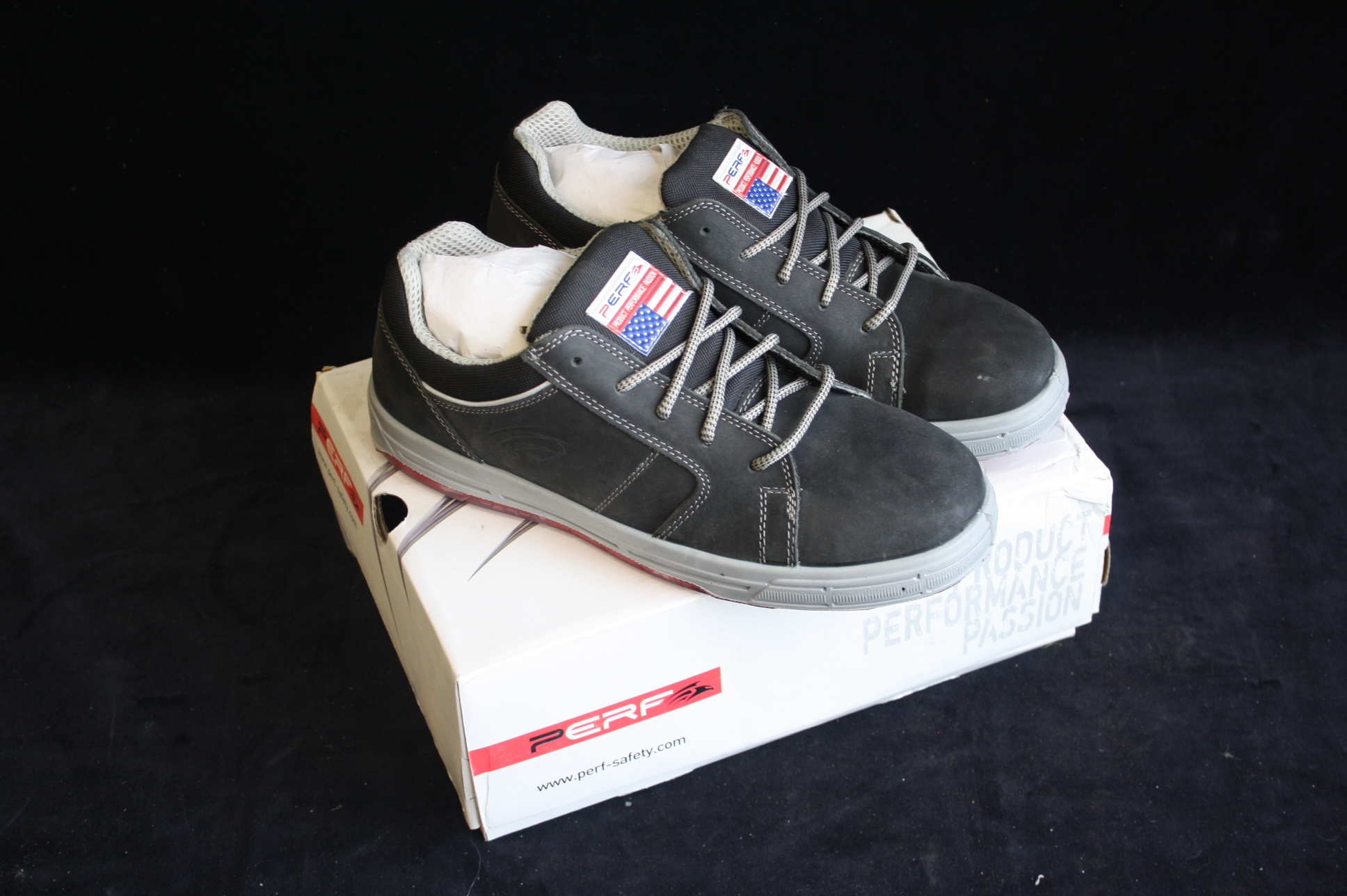 perf skater black safety trainers