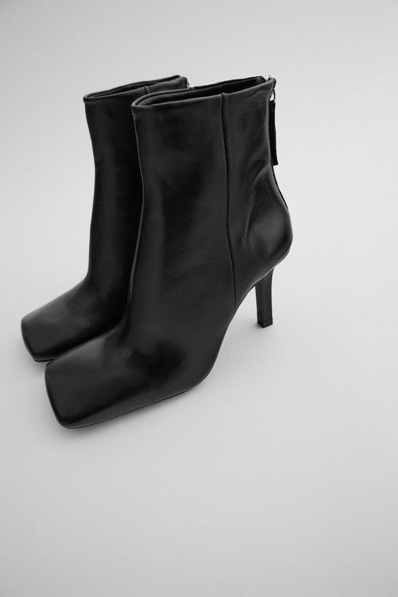 HEELED LEATHER SQUARE TOE ANKLE BOOTS zara ankle boots