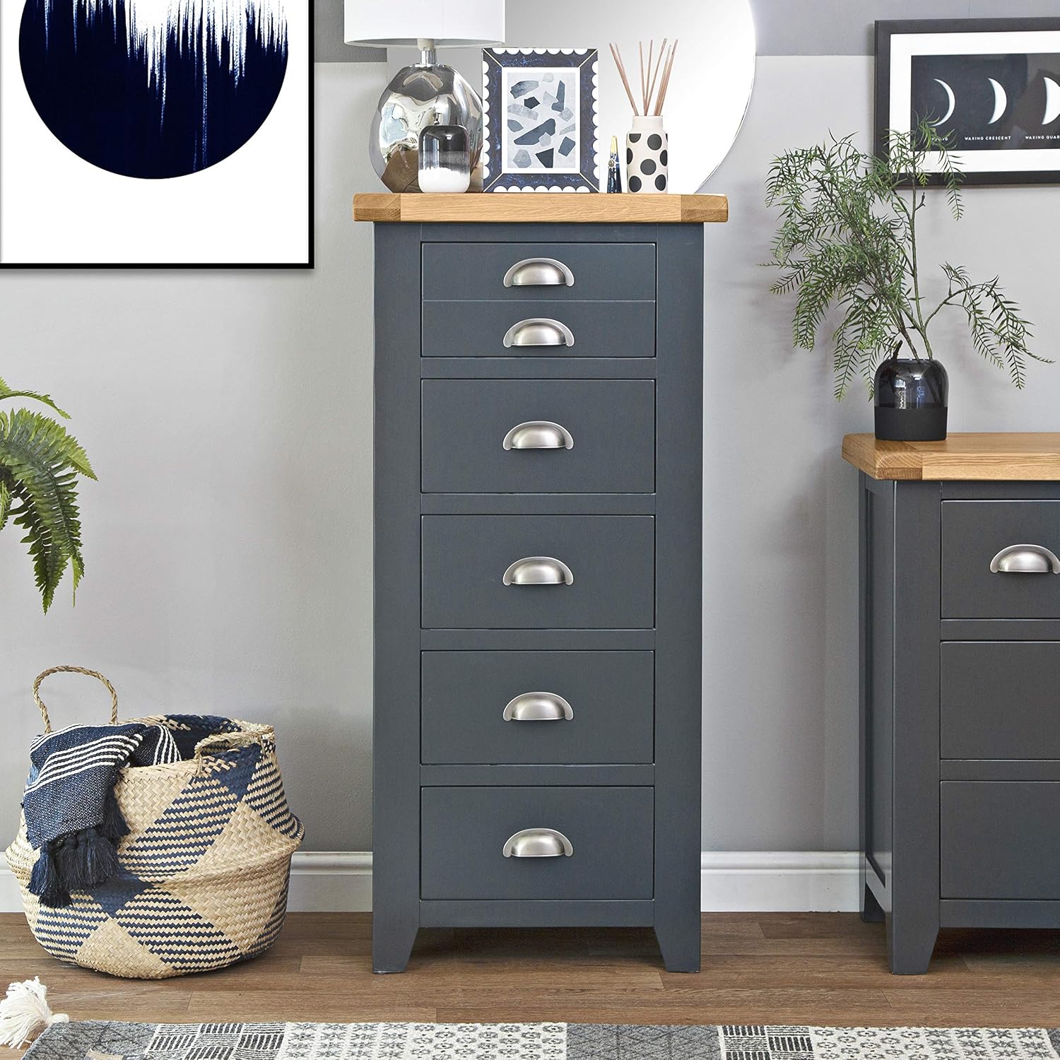 Westbury Blue Painted 5 Drawer Tallboy