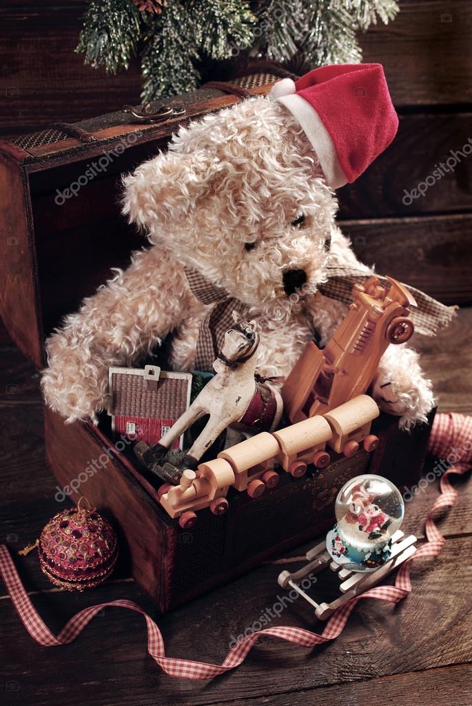 Vintage christmas toys for boys in old christmas toy chest