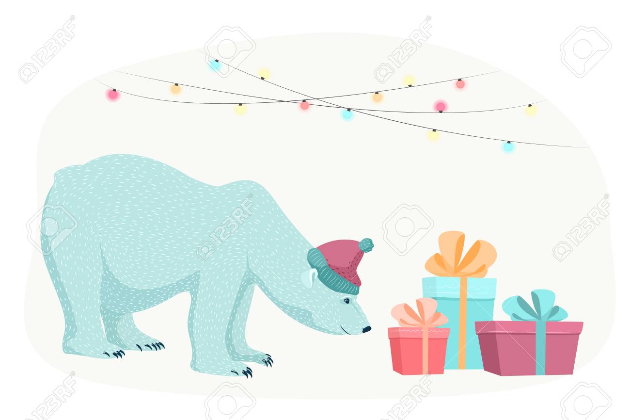 Polar Bear In A Hat Giving Gifts polar bear gifts