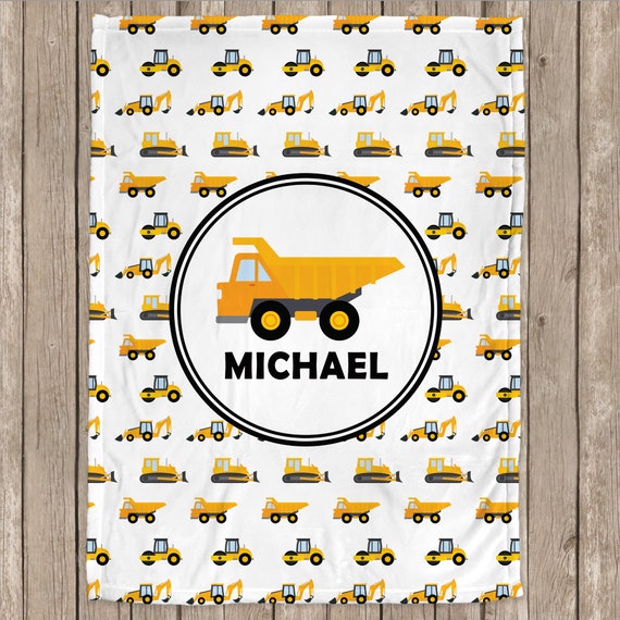 baby boy, dump truck baby blanket, boy custom name baby blanket