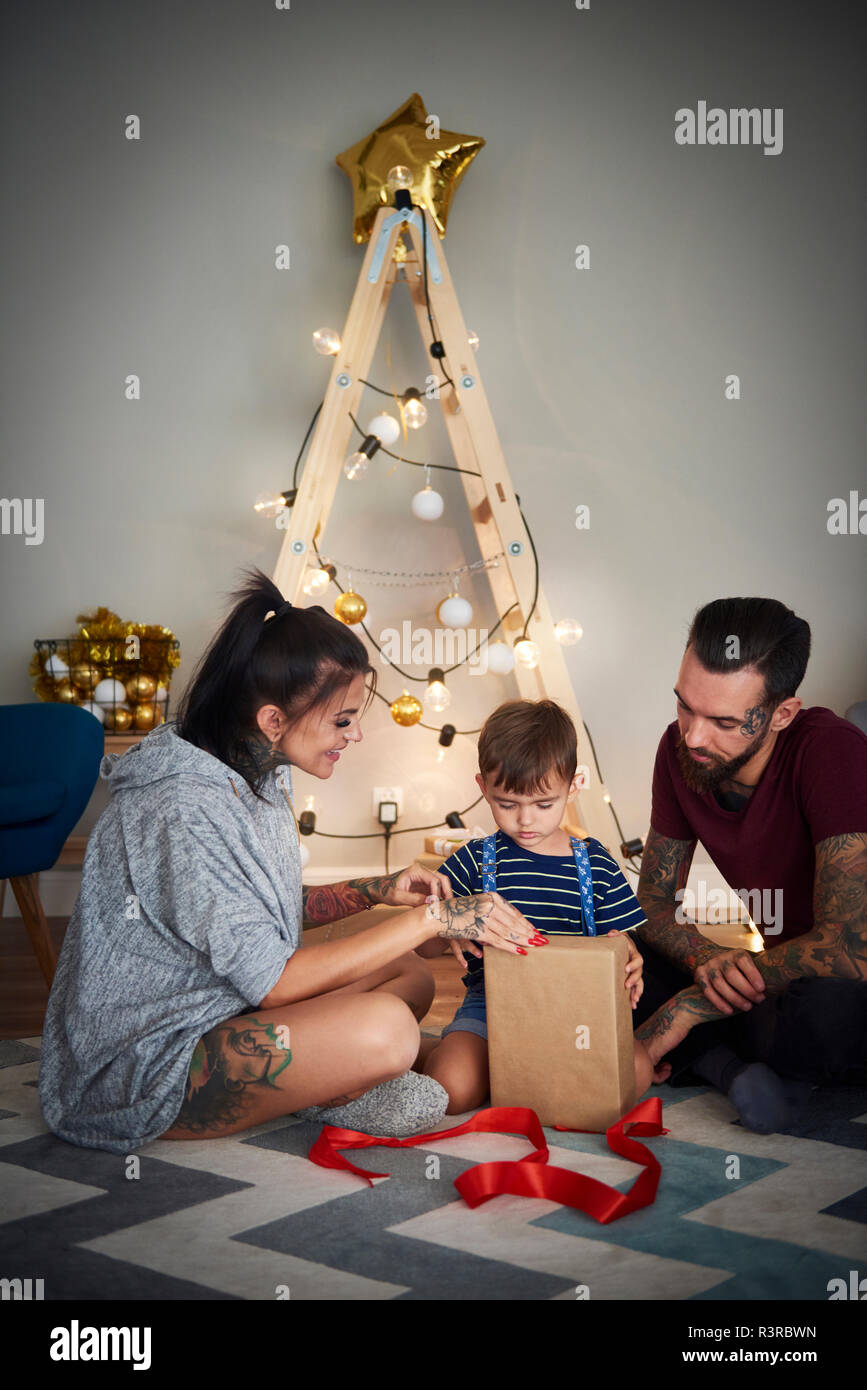Boy opening Christmas present with his what to get his parents for christmas