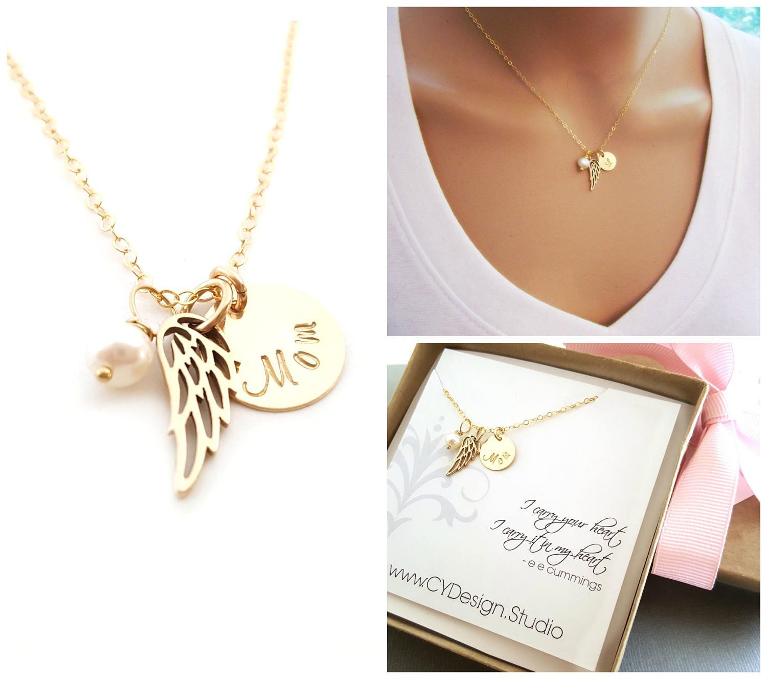 Mom/Dad Dainty Angel Wing Necklace mom gold chain