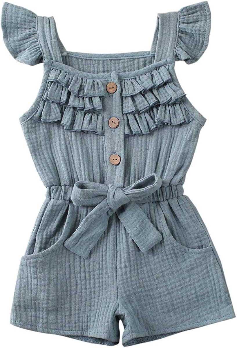 Kuriozud Toddler Baby Girl Cotton Linen jumpsuit age 12