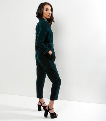 Petite Dark Green Velvet Tuxedo velvet petite jumpsuit