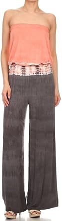 HEYHUN Women's Solid Strapless Boho maxi palazzo jumpsuit
