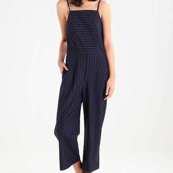 navy blue pinstripe jumpsuit