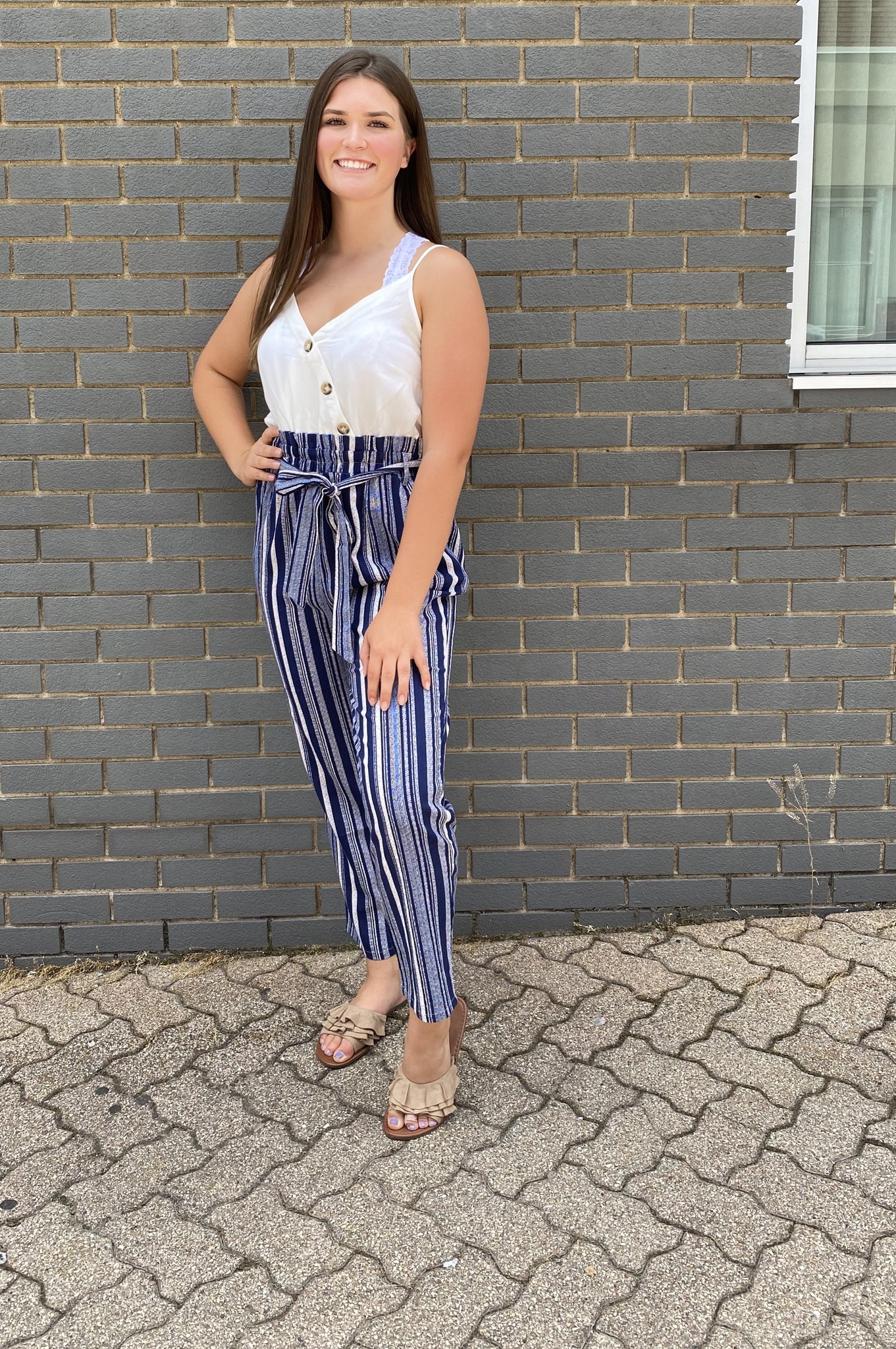 Navy multi stripe jumpsuit with white white top jumpsuit