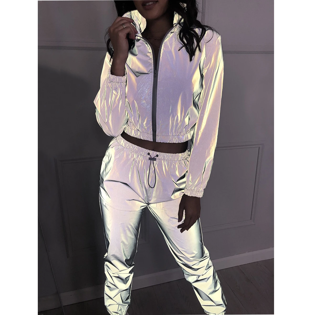 Ladies Loose Zipper Shine Jacket Coat tracksuits for plus size ladies