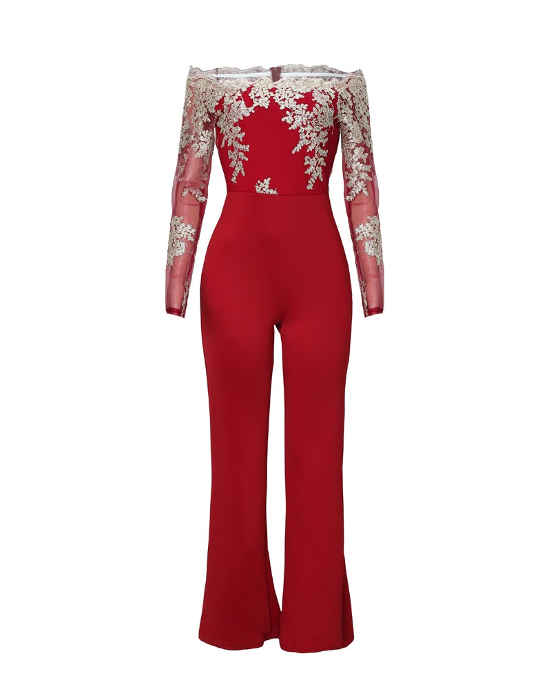 Flower Embroidery Off Shoulder Wide Leg flower embroidery off shoulder wide leg jumpsuit
