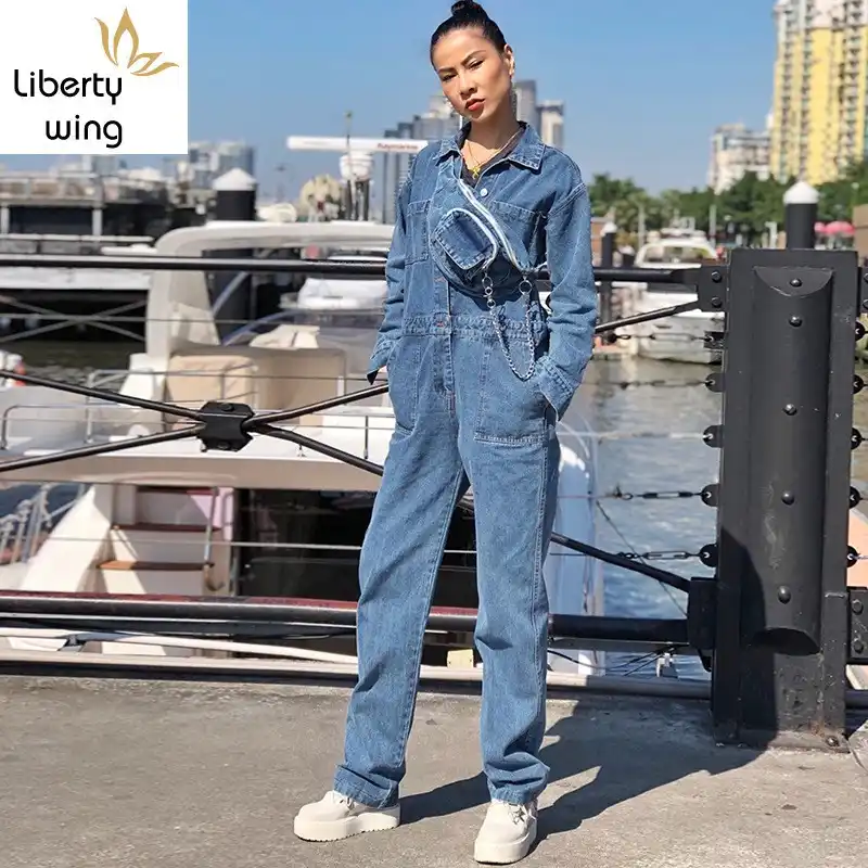 Women Cargo Denim Jumpsuit street jumpsuit