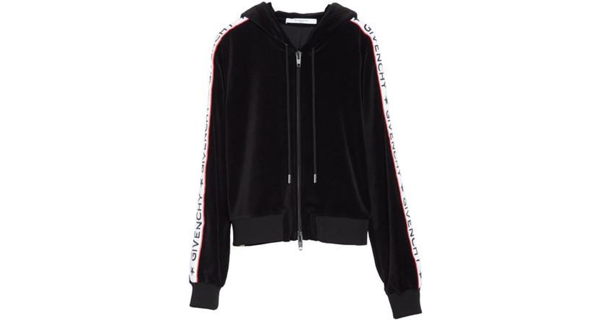 Givenchy Logo Stripe Velvet Hoodie in givenchy velvet tracksuit