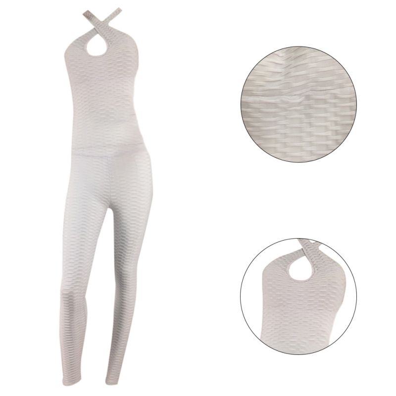 Textured Hollow Bodysuit Fitness white tank jumpsuit