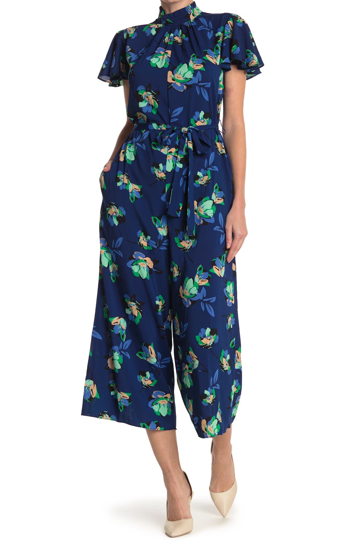 Donna Morgan | Floral Flutter Sleeve floral short sleeve jumpsuit