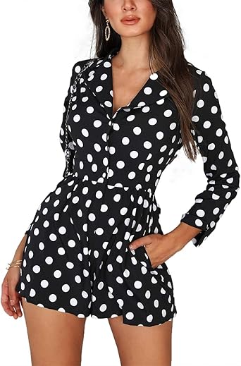 Ninimour Women Polka Dot Print Chic long sleeve polka dot jumpsuit