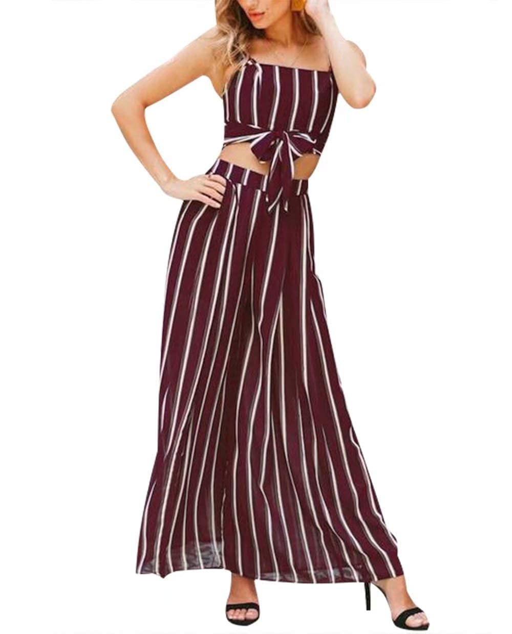 Buy Women Sleeveless Striped Print Long two piece jump suit