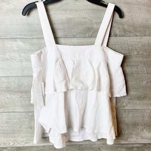 Abound Women's White Linen tiered abound linen overalls