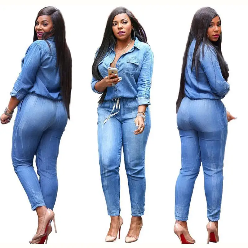 Sleeve Jeans Jumpsuit Handsome Deep ladies jam suit