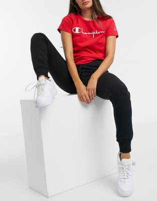 Champion large script logo trackies in black champion trackies