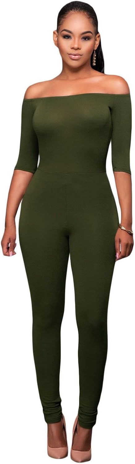 Off Shoulder Jumpsuit Catsuit Club Wear olive green catsuit