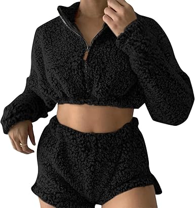 2 Piece Sweater Long Sleeve Crop Top fuzzy sweatsuit