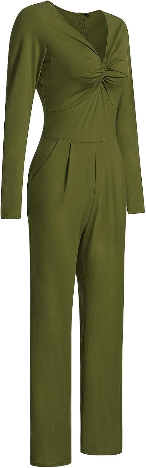 KILIG Women V Neck Tie Front Long striped casual jumpsuit
