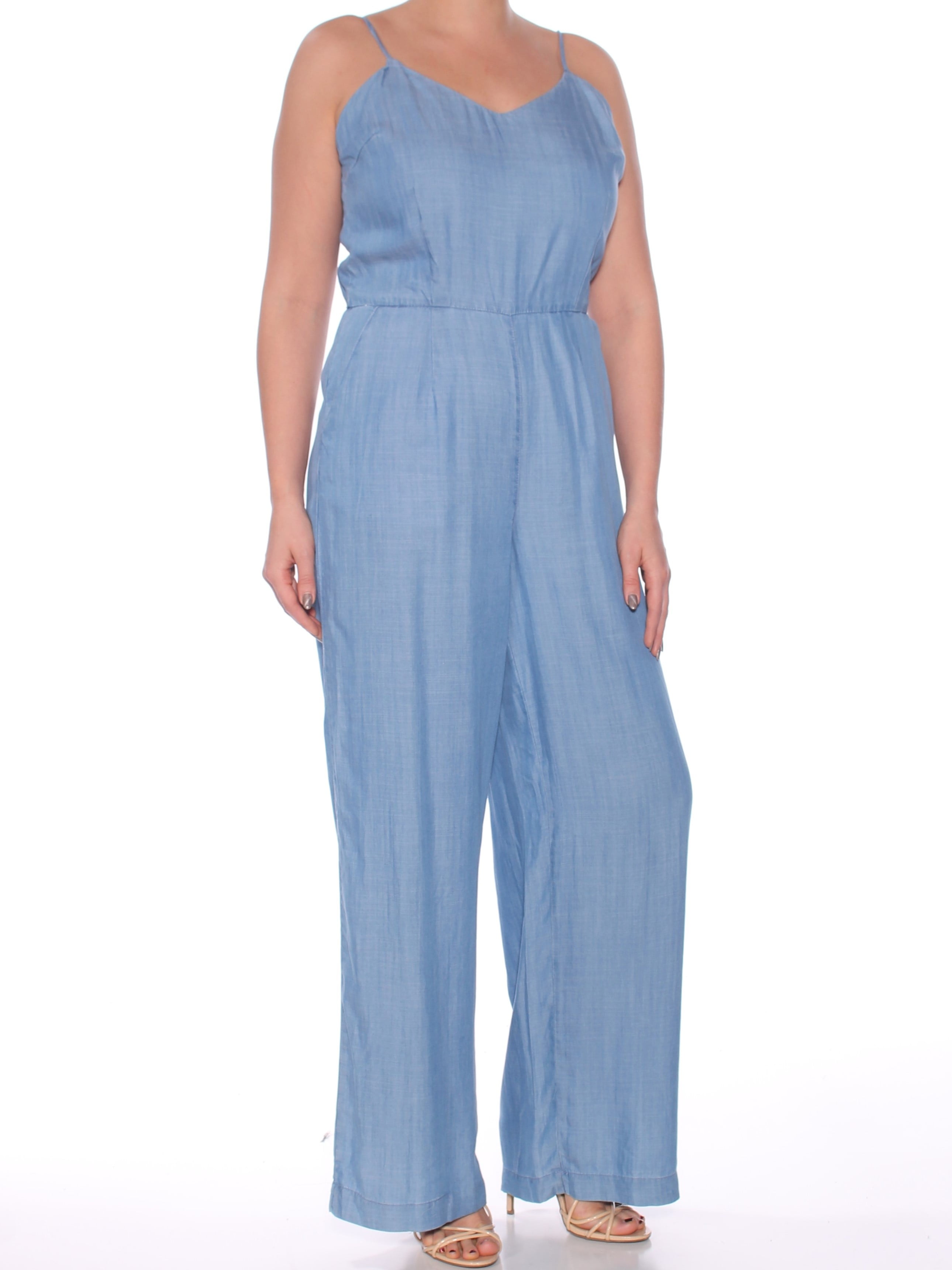 MAISON JULES Womens Light Blue Pocketed empire waist jumpsuit