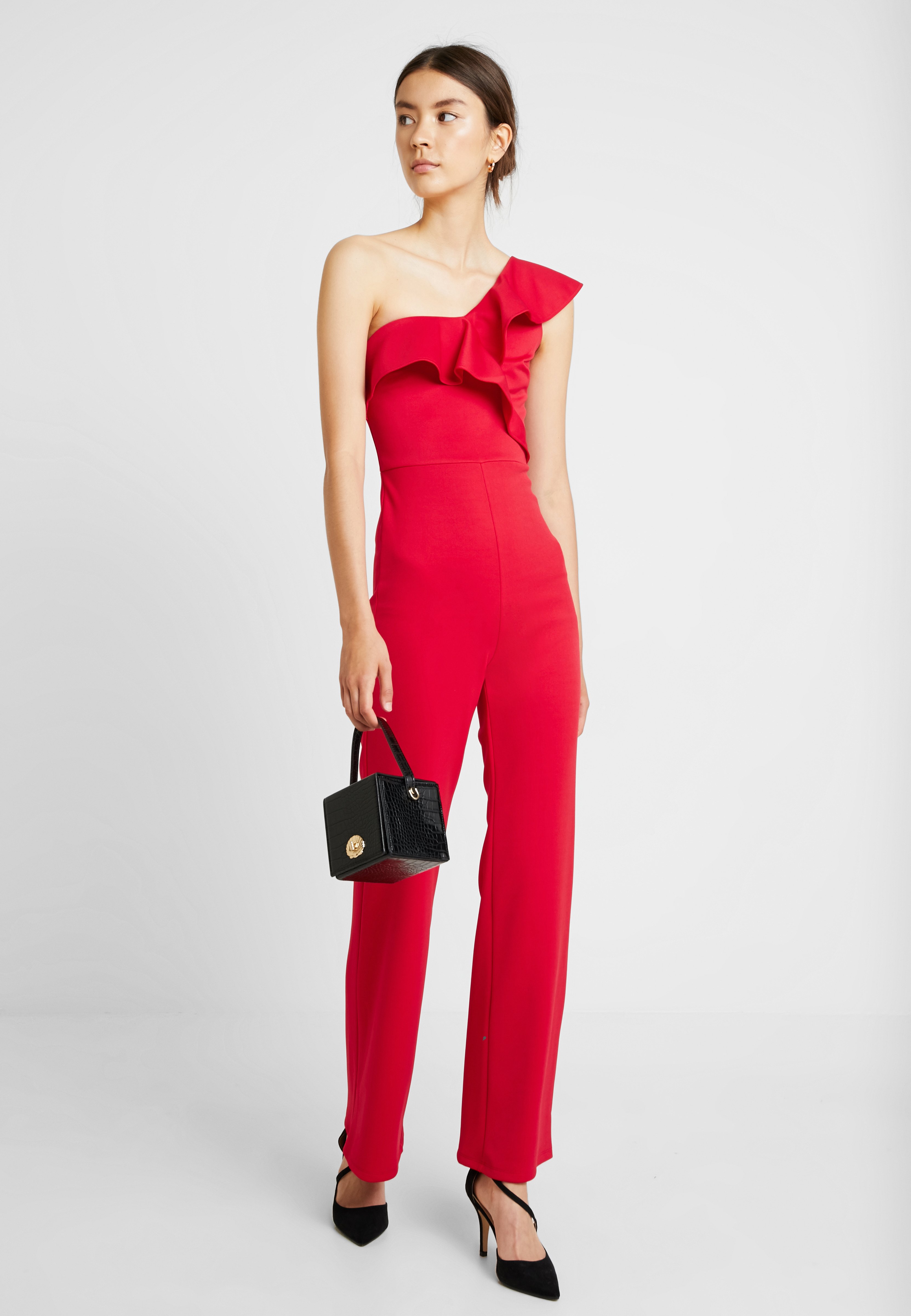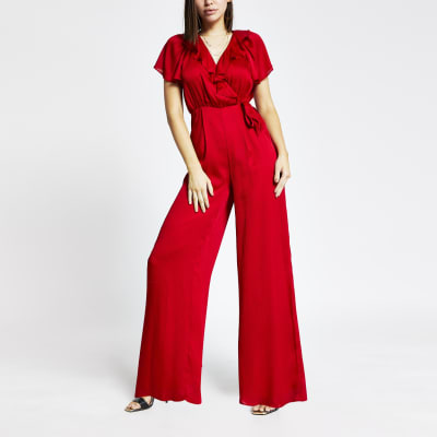 Red frill wrap front jumpsuit | River red frill jumpsuit