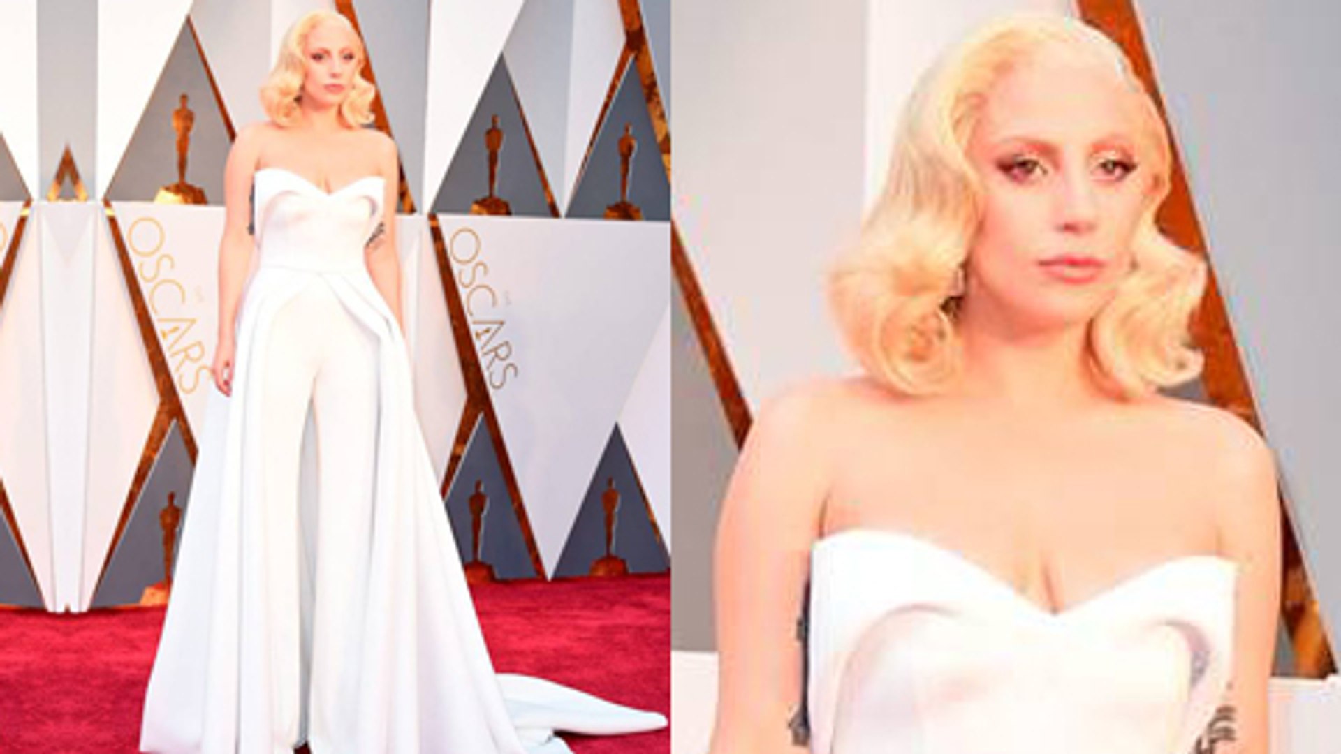 Lady Gaga hits the Oscars 2016 red lady gaga white jumpsuit