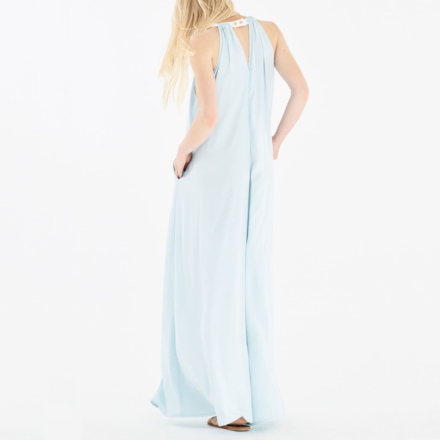 Two Tone Halter Neck Jumpsuit with pastel blue jumpsuit