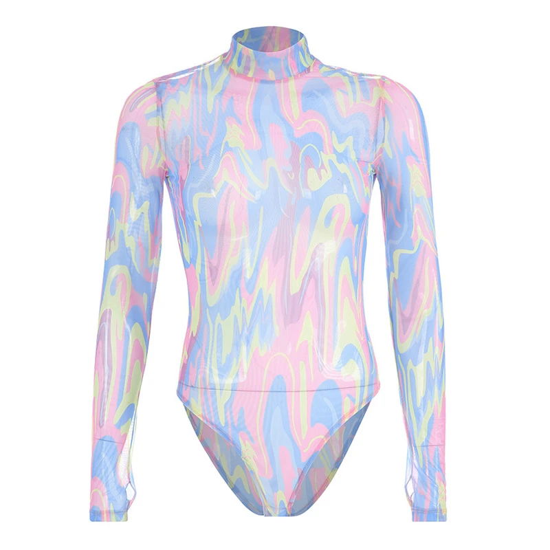 Sexy Bodycon Long Sleeve Bodysuit Women high neck playsuit long sleeve