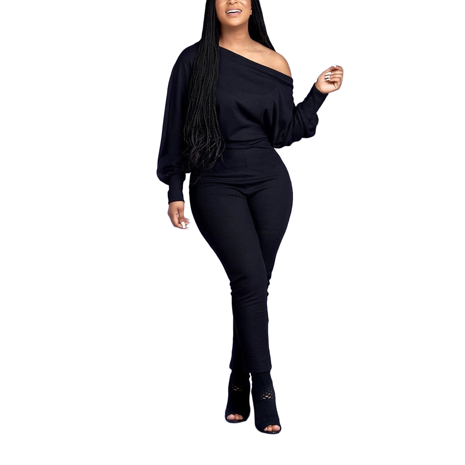 Women: Off Shoulder, Wide Leg long sleeve one shoulder jumpsuit