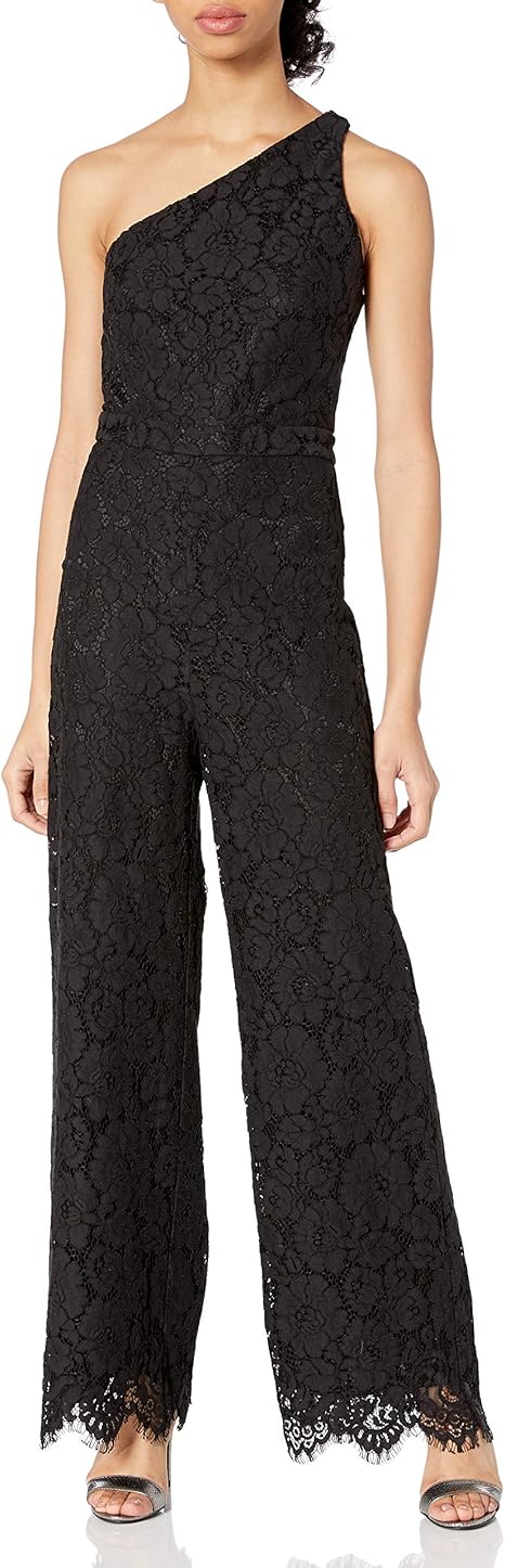 Black One-shoulder lace jumpsuit one shoulder lace jumpsuit