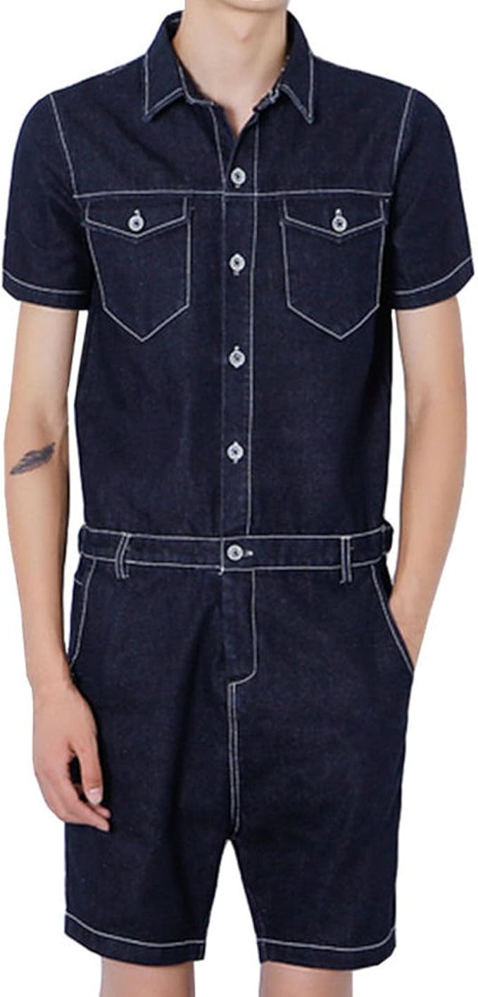 HZCX FASHION Men's Short Sleeve Denim jeans one piece jumpsuit