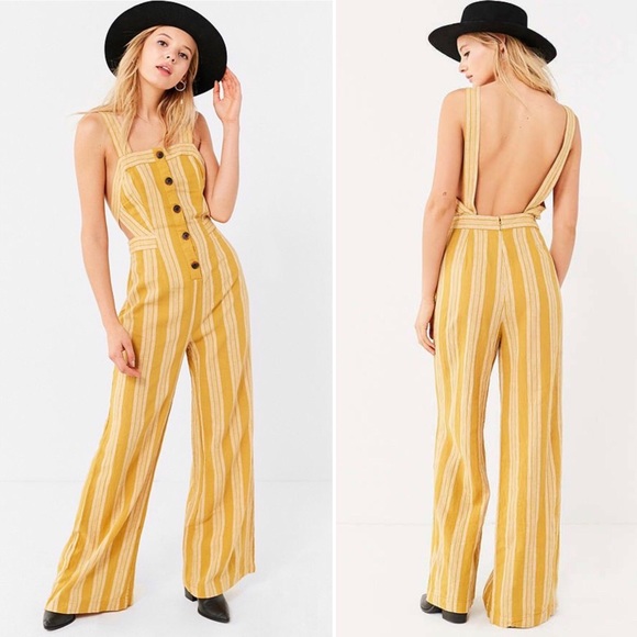 NWOT URBAN OUTFITTERS UO YELLOW STRIPE urban outfitters yellow jumpsuit