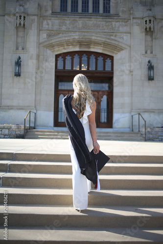 College Graduation Concept Young Woman graduation gown with jumpsuit