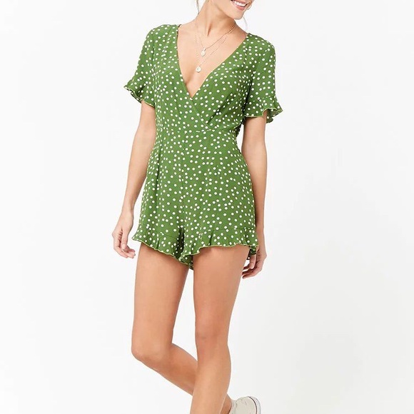 Green Polka Dot Vneck Romper | Poshmark green and white polka dot jumpsuit