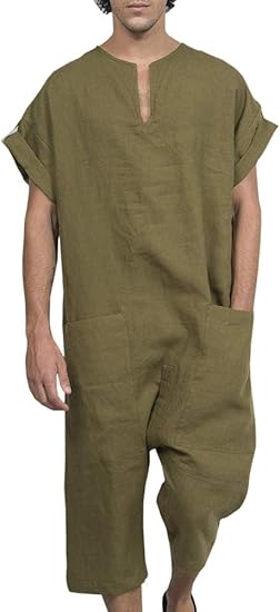 Linen Rompers Short Sleeve knee length romper jumpsuit
